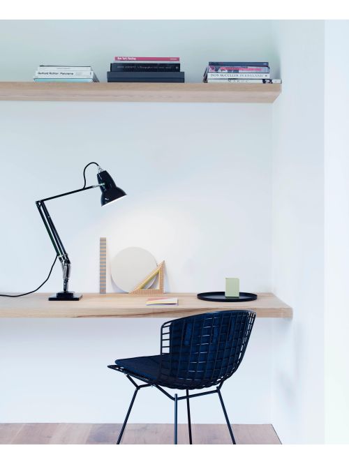 The Anglepoise Original 1227 Desk Lamp is a particularly flexible table lamp thanks to tension spring technology. Its lamp arms are individually adjustable by constant tension spring technology, whereby the light distribution can be precisely adjusted again and again. The lamp shade can be tilted and rotated. Due to the tension spring technology, the lamp arms and shade remain in any set position.