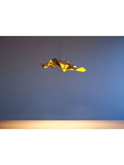 Like a dress in the updraft above an underground shaft, the NormaJeane Lusso by Lichtlauf floats above the table and sends powerful, soft light downwards. The shade of this pendant lamp is available in gold, copper and silver. Each lamp is individually formed by hand and unique. The top and bottom of the aluminium lampshade are optionally available hand-applied with gold, silver or copper leaf. The integrated LED with an output of 12 watts has a colour temperature of 3,000 Kelvin warm white. The light of the integrated LED is characterised by very good colour rendering with a high colour rendering index of Ra 90. The lampshade of the NormaJeane Lusso is 40 cm wide, 40 cm long and 12 cm high. Due to the handcrafted manufacturing process, there may be irregularities in the leaf-finished surface. This pendant lamp has a 200 cm long transparent cable, which can be shortened if necessary. The height adjustment is made directly on the wire cable. The NormaJeane Lusso by Lichtlauf is available as a dimmable or non-dimmable version. On request, this lamp is also available with other pendant lengths.