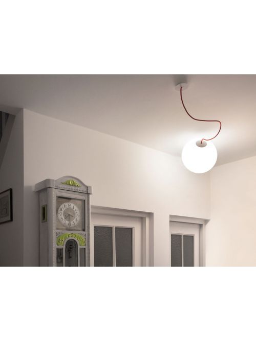 The Lichtlauf UpLight is an unusual lamp for mounting on a ceiling or wall within a radius of approx. 1 m around a power outlet. The white hollow sphere made of resistant and high-quality polyethylene is available in three different diameters, the textile cable in three different colours. The Lichtlauf Uplight can be positioned very freely, thanks to the diverse mounting options, this spherical luminaire is a wall or ceiling luminaire as well as a pendant lamp. Wherever uniform, soft light is to illuminate the room, this lamp is ideally placed. If you combine several lamps with different diameters, small individual light objects are created. The UpLight by Lichtlauf has an E27 ceramic socket and can be operated with conventional halogen bulbs as well as with LED retrofit bulbs. This lamp is available with a diameter of 30 cm, 40 cm or 50 cm. The textile 1.2 m long cable is optionally available in white, red or grey. With the enclosed accessories (including canopy, ceiling bracket and wire rope), the lamp can be mounted on the wall as well as on the ceiling. The textile cable is also available in other colours and lengths on request.