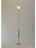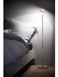 The Florian Schulz Vayo floor lamp is 180 cm in height. It is equipped with an upwards aligned lamp shade for room light and uplight as well as an additional reading lamp with a flexible arm. These two lights are separately switchable and dimmable. The switches / dimmers are directly attached to the light rod. The lamp shade of the floor lamp of the Vayo is 23 cm in diameter and consists of shiny opal glass. The shade of the reading lamp is made of white Teflon and has a diameter of 7 cm.