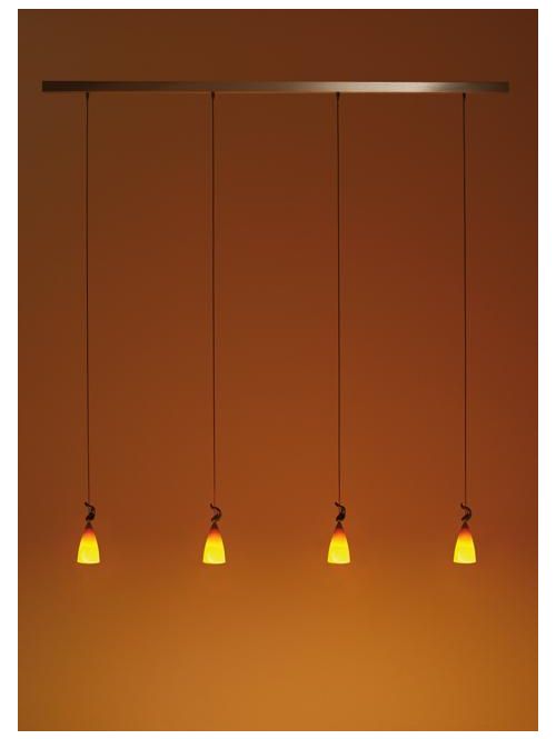 All pendant lamps of this series are dimmable on site. By simply pushing the coaxial cable into the ceiling housing, the lamps can be individually adjusted in height. The lampshades should remind of tulips: natural and clear the shape - soft, wide and warm the light cone. They emit a direct, neutral light on the surface to be illuminated and a warm diffuse light in the surrounding area. Supplied with 35 watt lamps.