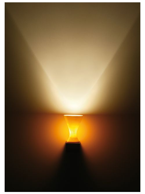 The K-meral MELA Wall Lamp comprises a lampshade out of porcelain and a socket coming with an integrated dimmable transformer out of brushed stainless steel. This lamp is classically shaped like a goblet or a funnel. The colourplay of yellow and orange is a speciality to be seen when the MELA Wall Lamp is switched on. The K-meral MELA Wall Lamp radiates a direct neutral light onto the ceiling as well as the wall. Moreover it scatters a warm diffuse lighting into its surrounding.