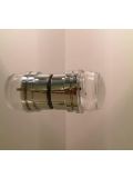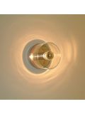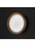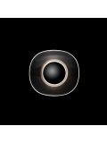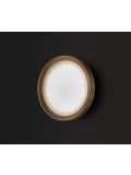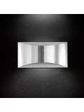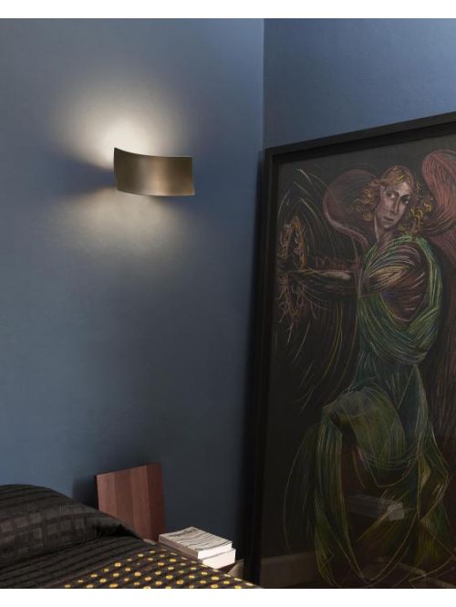 The Oluce Lens 151 is a wall lamp by Francesco Rota. The lamp shade and the wall mounting are made of metal bent into shape. The lamp emits its light simultaneously upwards and downwards. Thereby, a light effect is created on the wall above and below. Oluce offers the Lens 151 in the surfaces anodised bronze and gold-plated. The wall lamp is 16 cm high and has a width of 41 cm. It is operated with two R7s high-voltage halogen bulbs.
