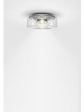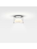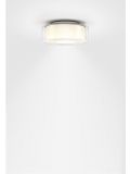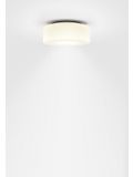 The three arms of the Serien Lighting Poppy Wall/ Ceiling are made of aluminum and covered with fabric. The lamp arms are available in the colours black or beige. The lamp shades are made of mouth-blown glass and are offered in the colours ruby red, black violet and ceramic. The slats of the lamp shades open when the light is switched on and are thus reminiscent of opening flower buds.