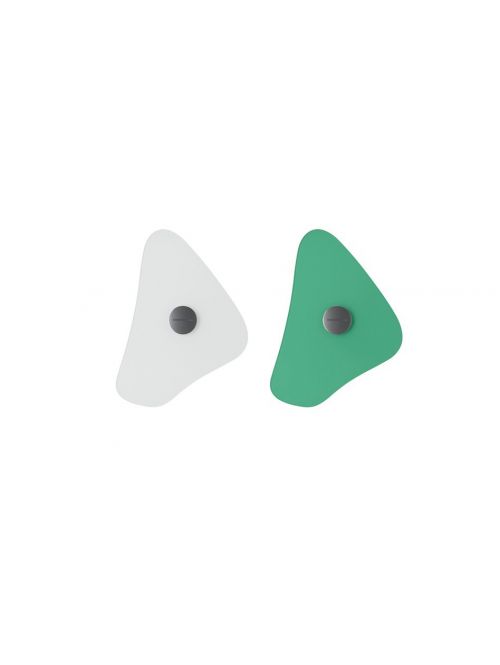 The Foscarini Bit 4 is a single wall lamp out of the Bit series designed by Ferruccio Laviani in 1993. The Bit 4 has a diffuser consisting of satined silk-screened glass placed onto a mounting out of lacquered metal.  The Foscarini Bit 4 comes with an on/off cord switch with which you may control the light intensity. The glass is on offer either in green or in white.