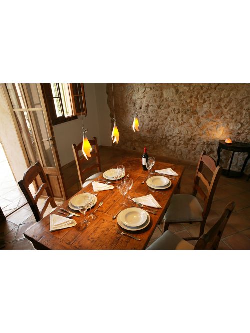 The K-meral TRIS is the origin of the collection "Light from the Fire". The filigree porcelain flames, the natural surface and the harmonious atmosphere of the light result in combination of a completely unique lamp. The TRIS pendant lamp is available in one or four lamps. Depending on the variant, the lamp consists of one to four porcelain lanterns and a canopy or a brushed aluminum strip.